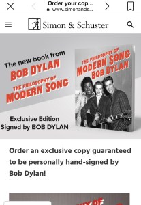 Yet, somewhat amazingly, Simon and Schuster continued to actively maintain that these were personally signed books. They stated they were not offering returns or refunds (unlike Coles Books). It seems possible that Simon and Schuster then asked the Dylan team to back up the books’ authenticity. as over the weekend of 19 November bobdylan.com also advertised the “personally signed” edition on social media (they received a torrent of abuse in the comments in reply).